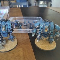 | Portée | A | C/T | F | PA | D | Capacités | | Autocanon Dogue | 48 | 4 | 3+ | 9 | -1 | 3 | | | Mitrailleuse Diabolus | 36 | 3 | 3+ | 5 | 0 | 1 | Tir Rapide 3 | | Pieds blindés | Mêlée | 4 | 3+ | 6 | 0 | 1 | |