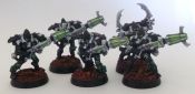 | Portée | A | C/T | F | PA | D | Capacités | | Lanceur à salves | 24 | 1 | 2+ | 10 | -3 | D6+1 | Jumelé | | Lance d'intercepteur | Mêlée | 6 | 2+ | 7 | -2 | 2 | Lance |