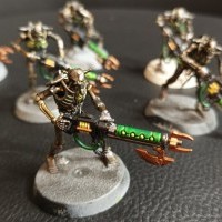 | Portée | A | C/T | F | PA | D | Capacités | | Fusil à plasma - Standard | 24 | 1 | 3+ | 7 | -2 | 1 | Tir Rapide 1 | | Fusil à plasma - Surchauffe | 24 | 1 | 3+ | 8 | -3 | 2 | Tir Rapide 1, A Risque | | Lance-peste | 24 | D3 | 3+ | 6 | -1 | 2 | Touches Fatales, Déflagration | | Couteau de la Peste | Mêlée | 3 | 3+ | 4 | 0 | 1 | Touches Fatales | | Arme lourde de la Peste | Mêlée | 3 | 4+ | 8 | -2 | 2 | Touches Fatales | | Couteaux de la Peste | Mêlée | 4 | 3+ | 4 | 0 | 1 | Touches Fatales | | Gantelet énergétique | Mêlée | 3 | 3+ | 8 | -2 | 2 | Touches Fatales |