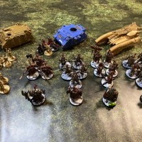 Equipement : Lance-grenade d’exo-scaphandre (4), Désintégrateur Volkanite (4), Gantelet à percussion (4) Aptitudes : Escorte de Bande Assermentée, Œil des Ancêtres Mots clés : Âtregardes Einhyr, Exo-scaphandre, Infanterie Mots clés de faction : Ligues de Votann