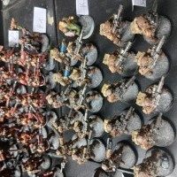 | Portée | A | C/T | F | PA | D | Capacités | | Fusil laser | 24 | 1 | 4+ | 3 | 0 | 1 | Tir Rapide 1 | | Mortier | 48 | D6 | 5+ | 5 | 0 | 1 | Déflagration, Lourd, Tir Indirect | | Armes de corps à corps d'Escouade d'Armes | Mêlée | 2 | 4+ | 3 | 0 | 1 | |